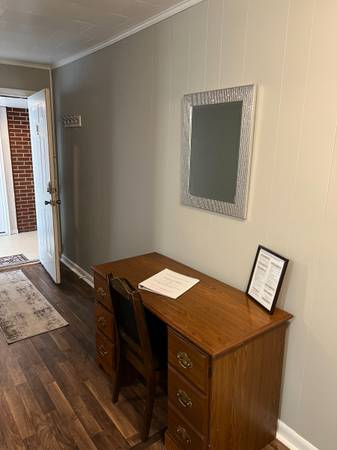 Many features include central heating and air, digital door lock and, once inside, you have an extra security door lock. Our units were just remodeled with brand new paint, bedding, and flooring. We also supply closet hangers to hang your clothes inside of a full-size closet with a dresser for additional space.