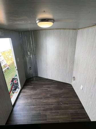 We just completely redid the dressing room to be the perfect little weekender. It’s a clean slate! Electric hookup and there is a stand-up air conditioner hook up for those hot summer months.